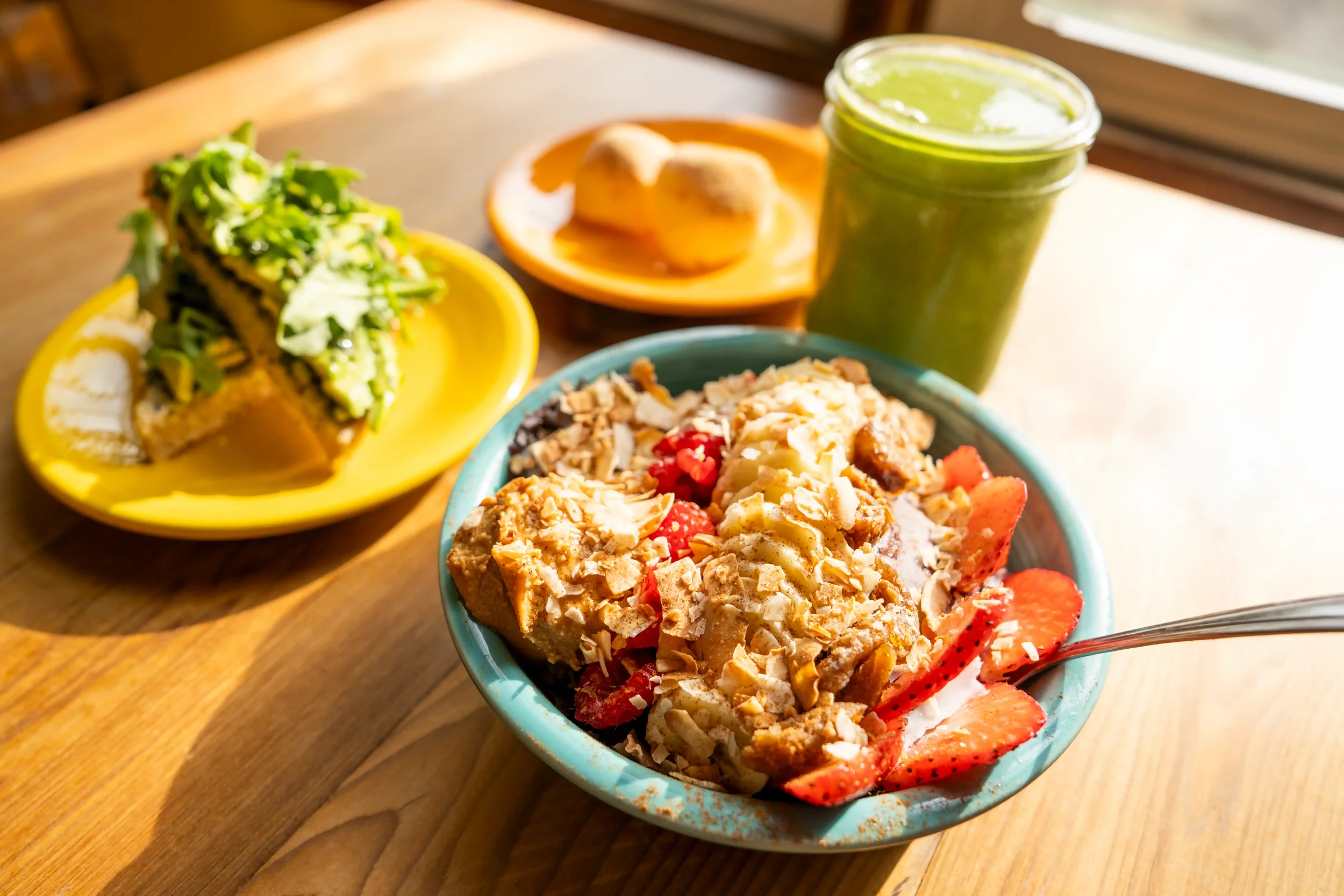 Think soft cheese breads, toasted sandwiches, and light bites that pair perfectly with a bowl or smoothie. They’re casual, comforting, and made to be enjoyed slowly.